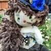 Tiggs sits 8″ tall when sitting on the shelf. She has red shoulder length hair . This little lady is wearing a pair of black dungaree’s finished with black and white ribbons, Tigg’s has her white school shirt and her school tie finally she is finished with her school fleece. All Tigg’s little outfit is cut from a school uniform making it a great way to keep those keepsakes.Tigg’s is finally finished with a red heart button nose and magnets in her hands.